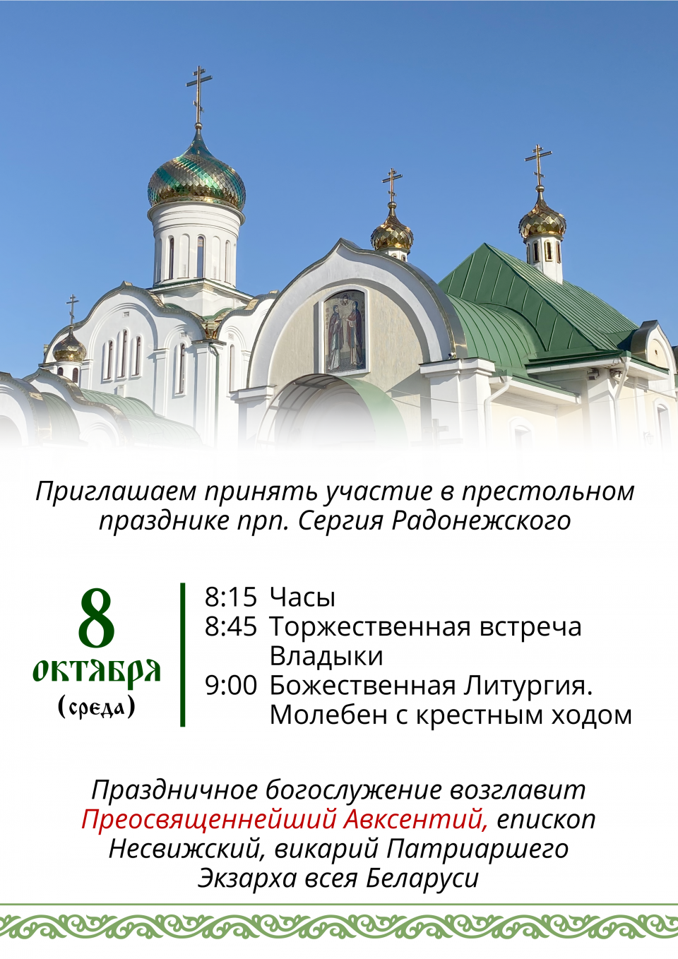 ПРИГЛАШАЕМ НА ПРЕСТОЛЬНЫЙ ПРАЗДНИК 8 ОКТЯБРЯ! СЛУЖБУ ВОЗГЛАВИТ ВЛАДЫКА АВКСЕНТИЙ!